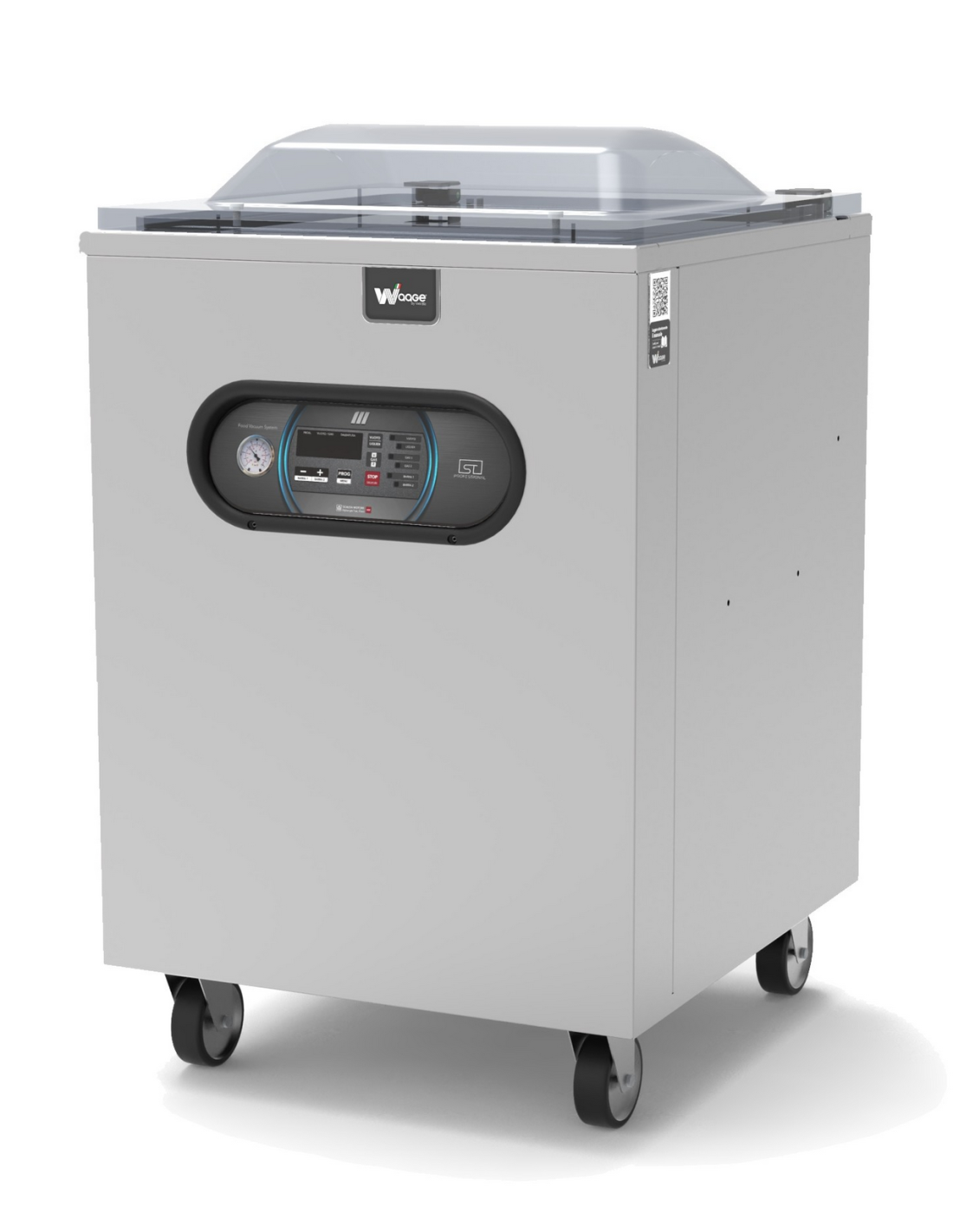 Sottovuoto a campana - Mod. ST-250C - Con carrello - Pompa vuoto 25 m3/h - Campana in plexiglass trasparente - Doppia barra saldante da 510 mm - Alimentazione monofase - Potenza 2300 W - Dimensione vasca cm 51.5 x 55 x 22h - Dimensione totale cm 60 x 67 x 90h