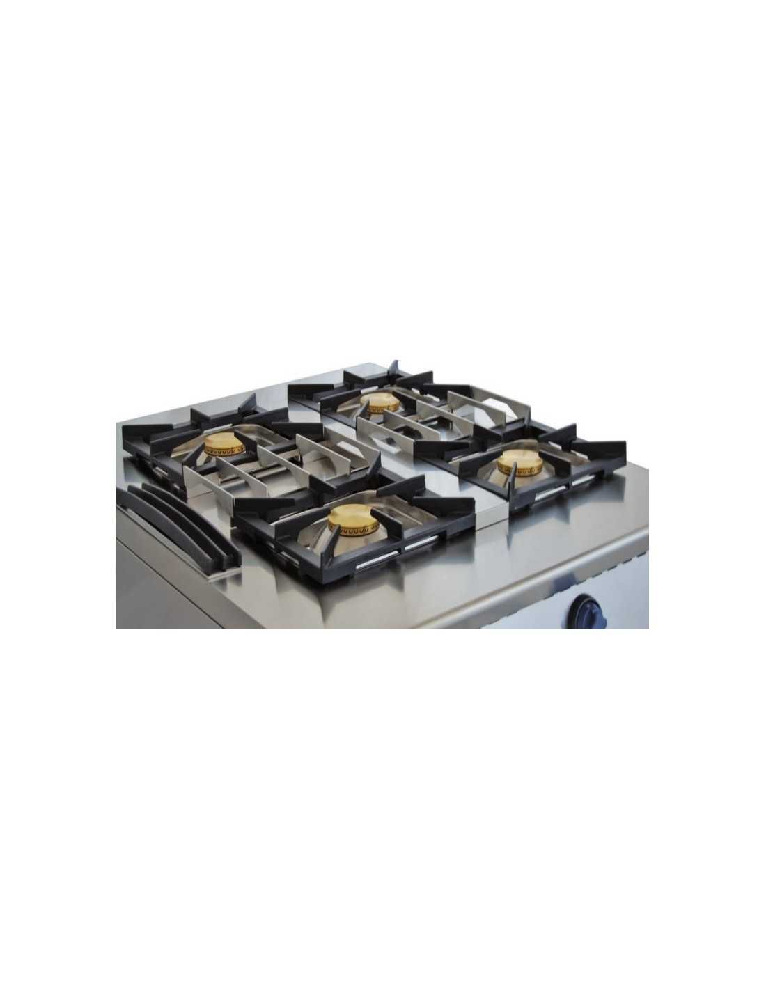 | È predisposto per alloggiare dei traversi che sostengono le bacinelle stampate h. 65 che garantiscono la tenuta dei liquidi e servono da riscontro per posizionare la griglia poggia pentole in ghisa. | |