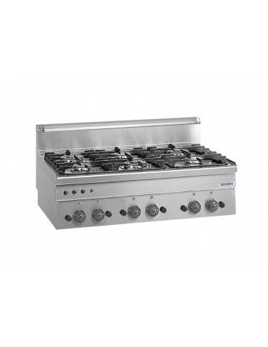Cucina a gas - Mod. MG106-03-000 - N.6 fuochi - Potenza 3 x kW 2.7 + 3 x kW 3.15 - Alimentazione gas - Dimensioni cm 100 x 60 x 27 h