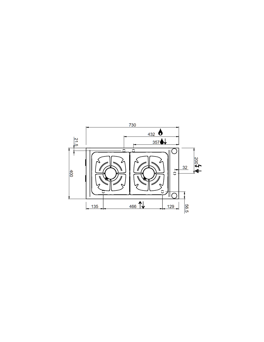 Cucina gas - Mod. LXFB74TXL - N. 2 fuochi - Potenza bruciatori kW 7+7 - Da banco - Struttura in acciaio inox - Alimentazione gas - Cm 40 x 73 x 25 h