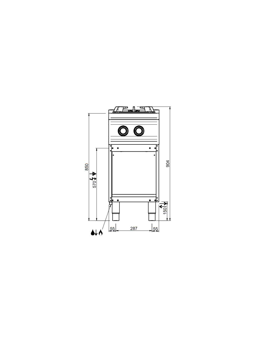 Cucina gas - Mod. DXMFB94AXXS - N. 2 fuochi - Potenza bruciatori kW 5.5 + 5.5 - Vano aperto - Struttura in acciaio inox - Alimentazione gas - Cm 40 x 90 x 85 h