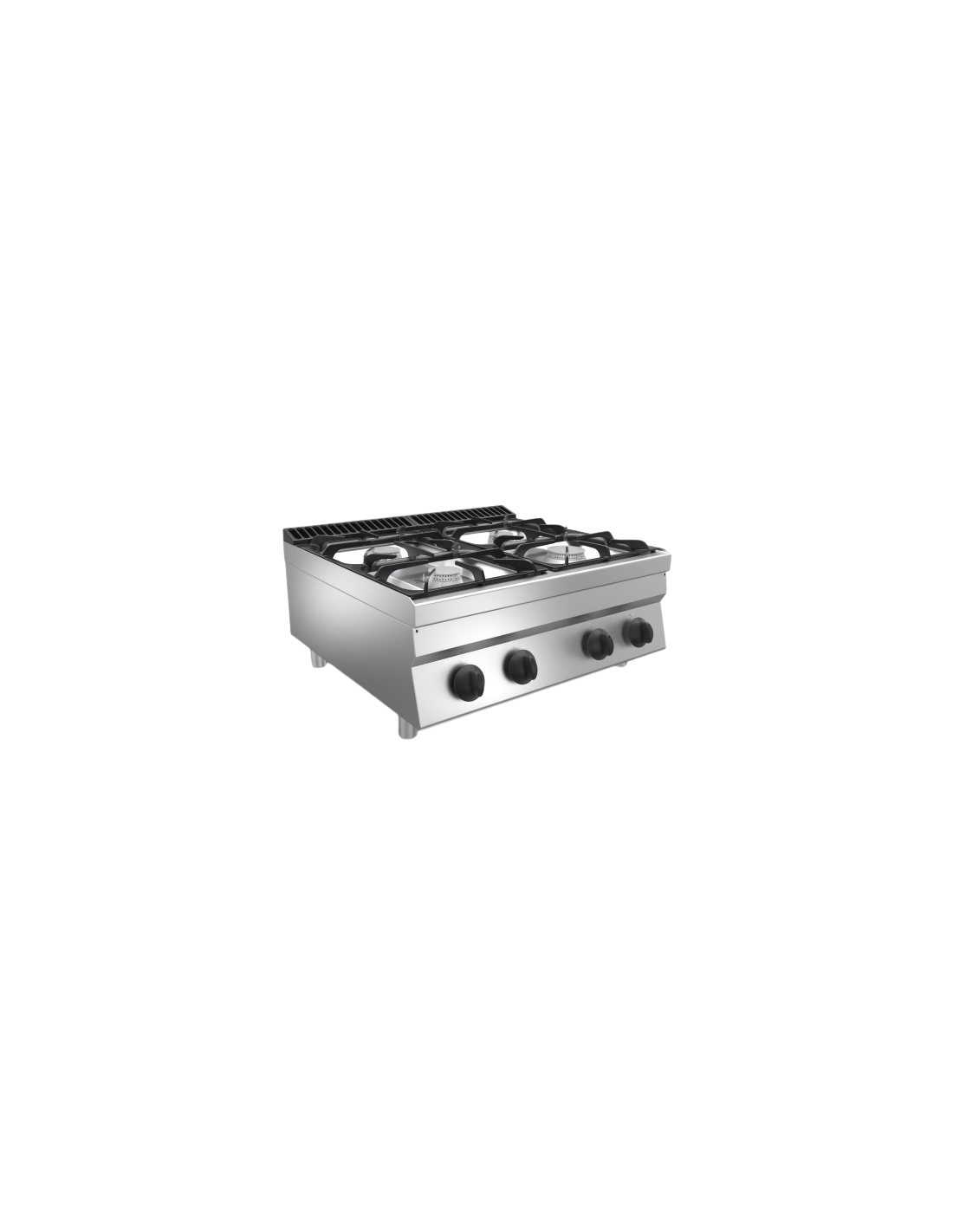 Cucina a gas - Modello 78GCTT248 - Da banco - N.4 fuochi - Potenza bruciatori 1 x 7.7 kw + 3 x 5.7 kw - Dimensioni cm 80 x 70 x 29.5 h