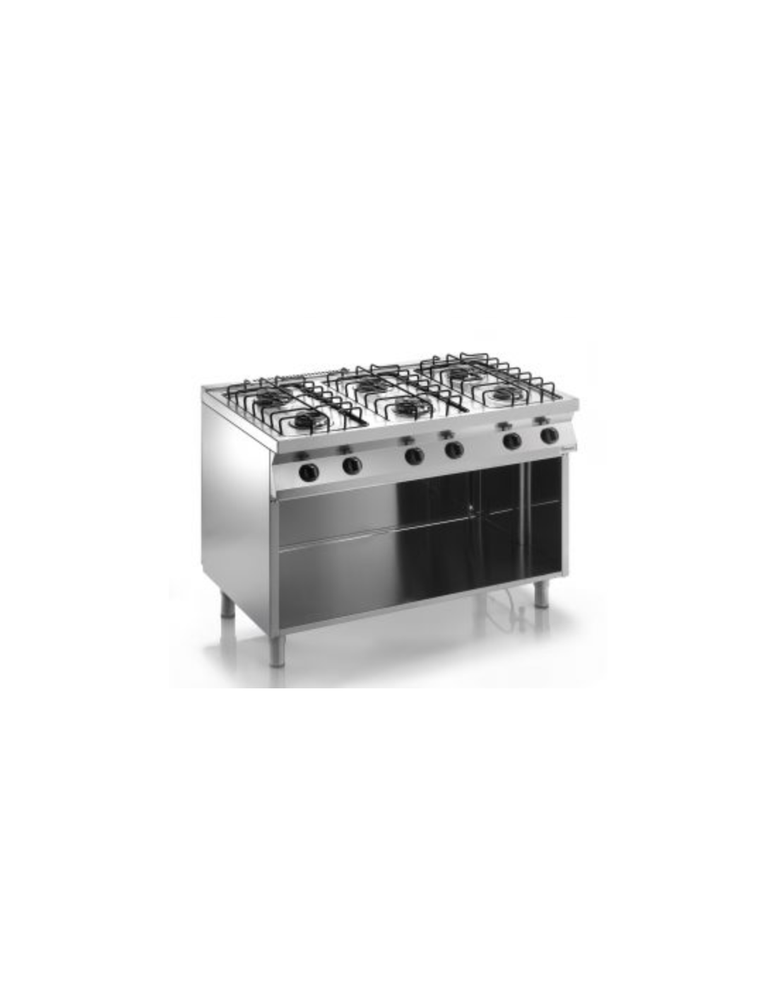 Cucina a gas 6 fuochi aperta - Potenza bruciatori 3 kW 3.5 + 3 kW 6 - Cm 120 x 70 x 85 h