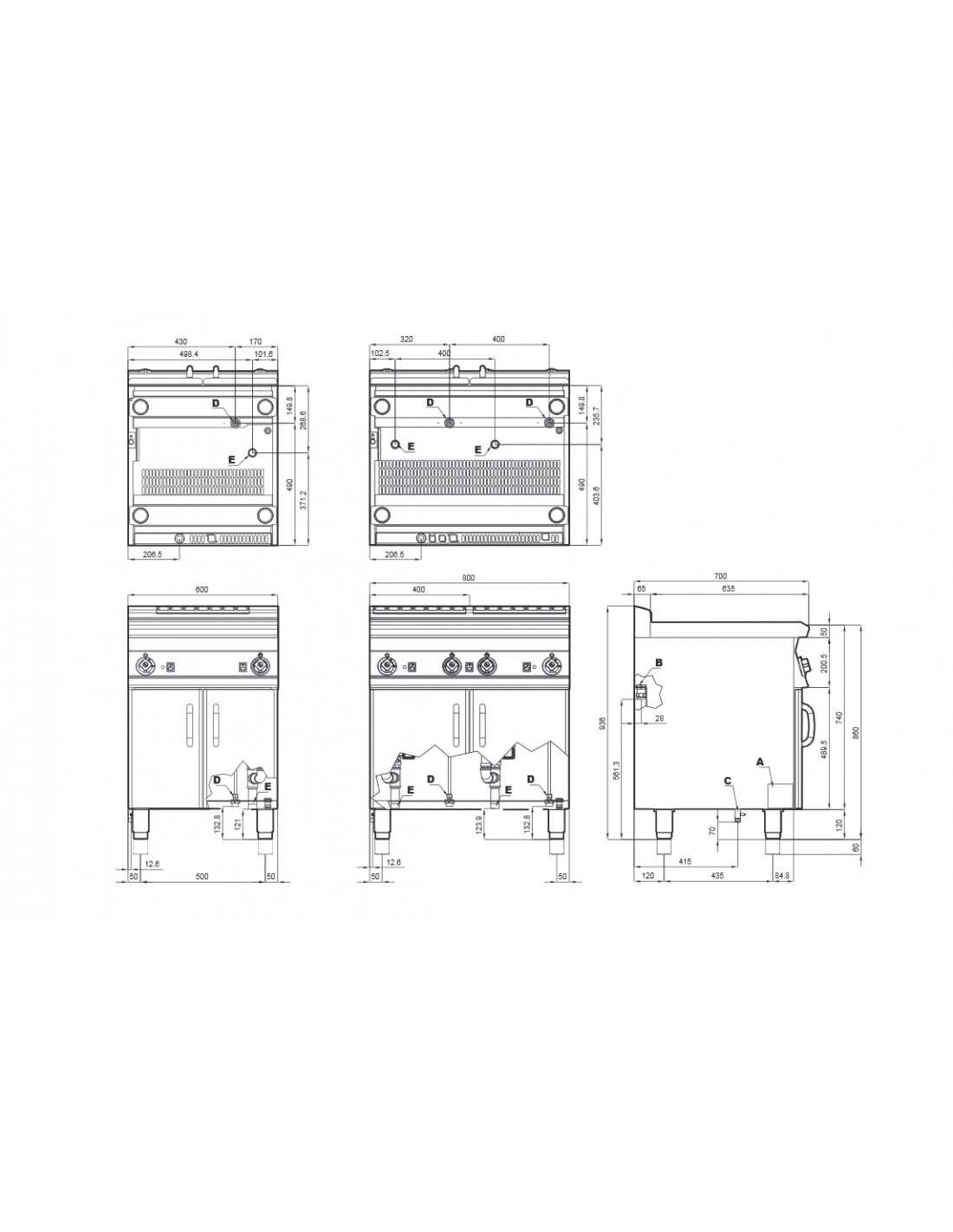 Cuocipasta gas con capacità 24 + 24 litri - cm 80 x 70 x 108.5h