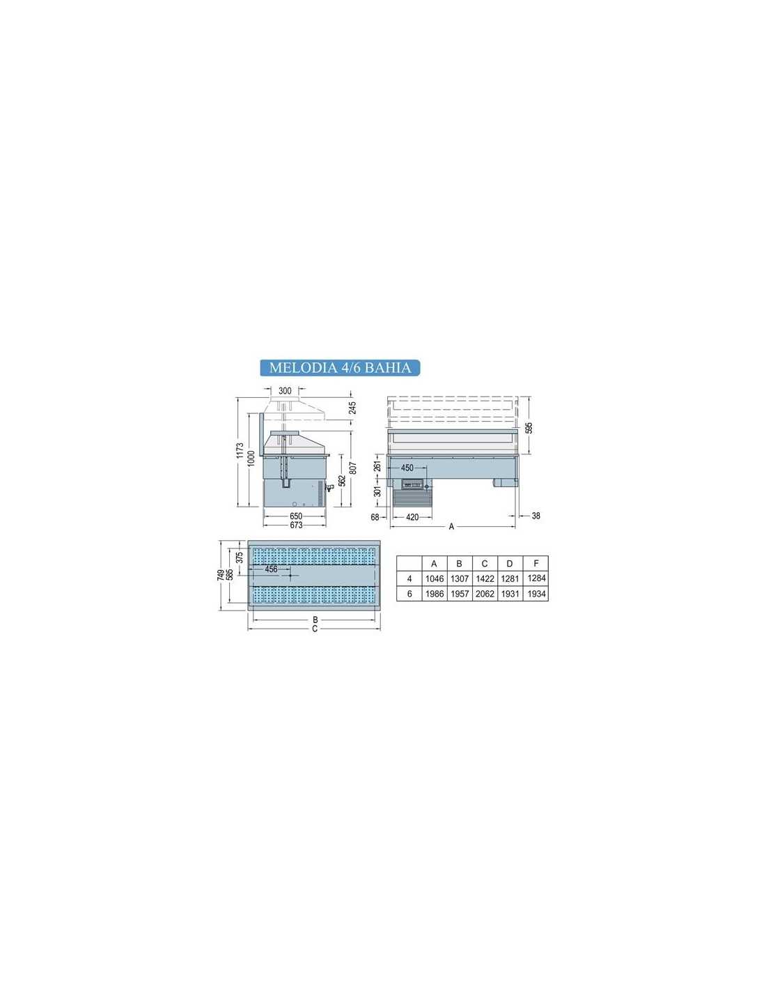 Vasca espositiva da incasso refrigerata per pesce - Potenza 340W - Dimensioni vasca cm 129 x 58 x 11H - Alimentazione monofase V230/1/50Hz - peso Kg 98 - Dimensione cm 142.2 x 74.9 x 117.3h