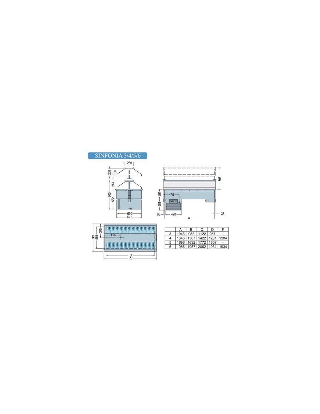 Vasca espositiva da incasso refrigerata per pasticceria o piatti pronti - temperatura +4/+10 - potenza 400W - alimentazione monofase V230/1/50Hz - peso Kg 88 - dimensione cm 142.2 x 74.9 x115.7H