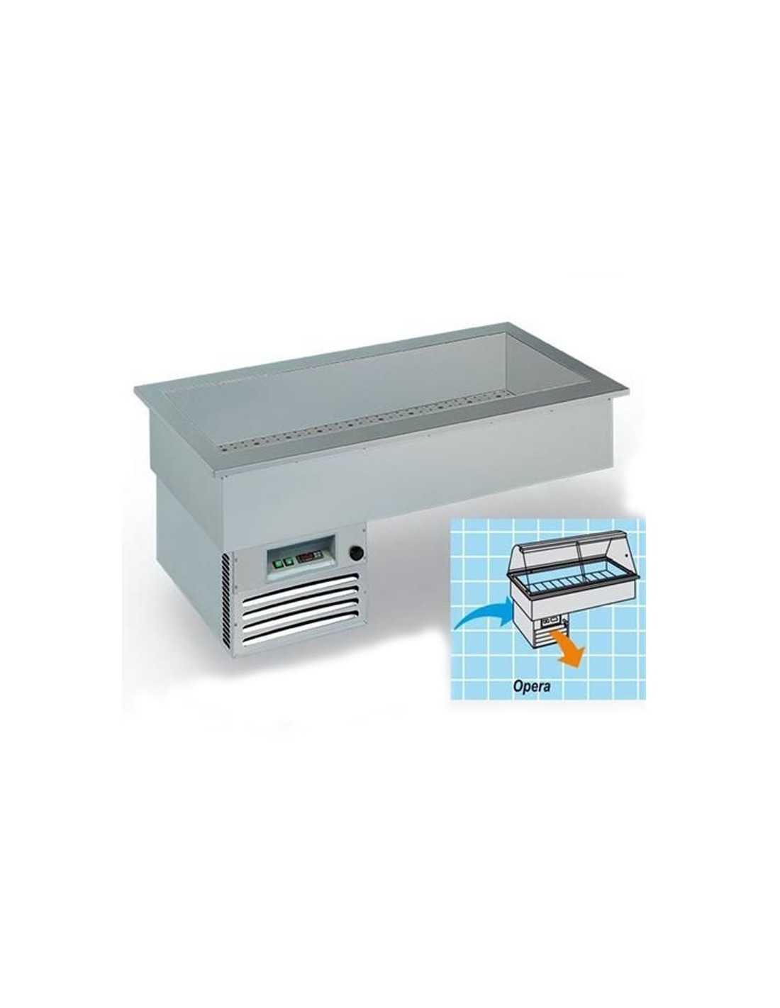 Vasca espositiva da incasso refrigerata - Mod. OPERA - Temperatura +4/+10°C - Potenza W340 - Alimentazione monofase V230/1/50Hz - Peso kg 83 - Dimensioni cm 112.2 x 74.9 x 100 h