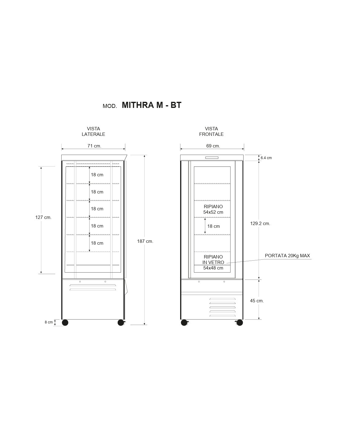Vetrina refrigerata - Capacità 450 lt - cm 67 x 64 x 186h