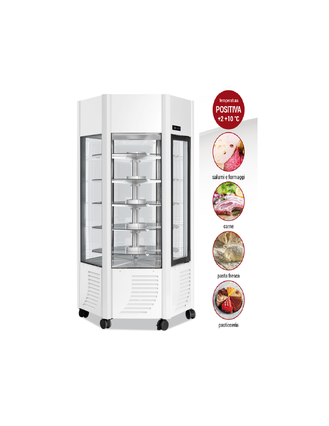 Vetrina Refrigerata- Temperatura +2 / +10 °C - Capacità Litri 600 - Esposizione su tutti i lati - Refrigerazione ventilata - Illuminazione LED - Dimensioni cm 101 x 90 x 190 h