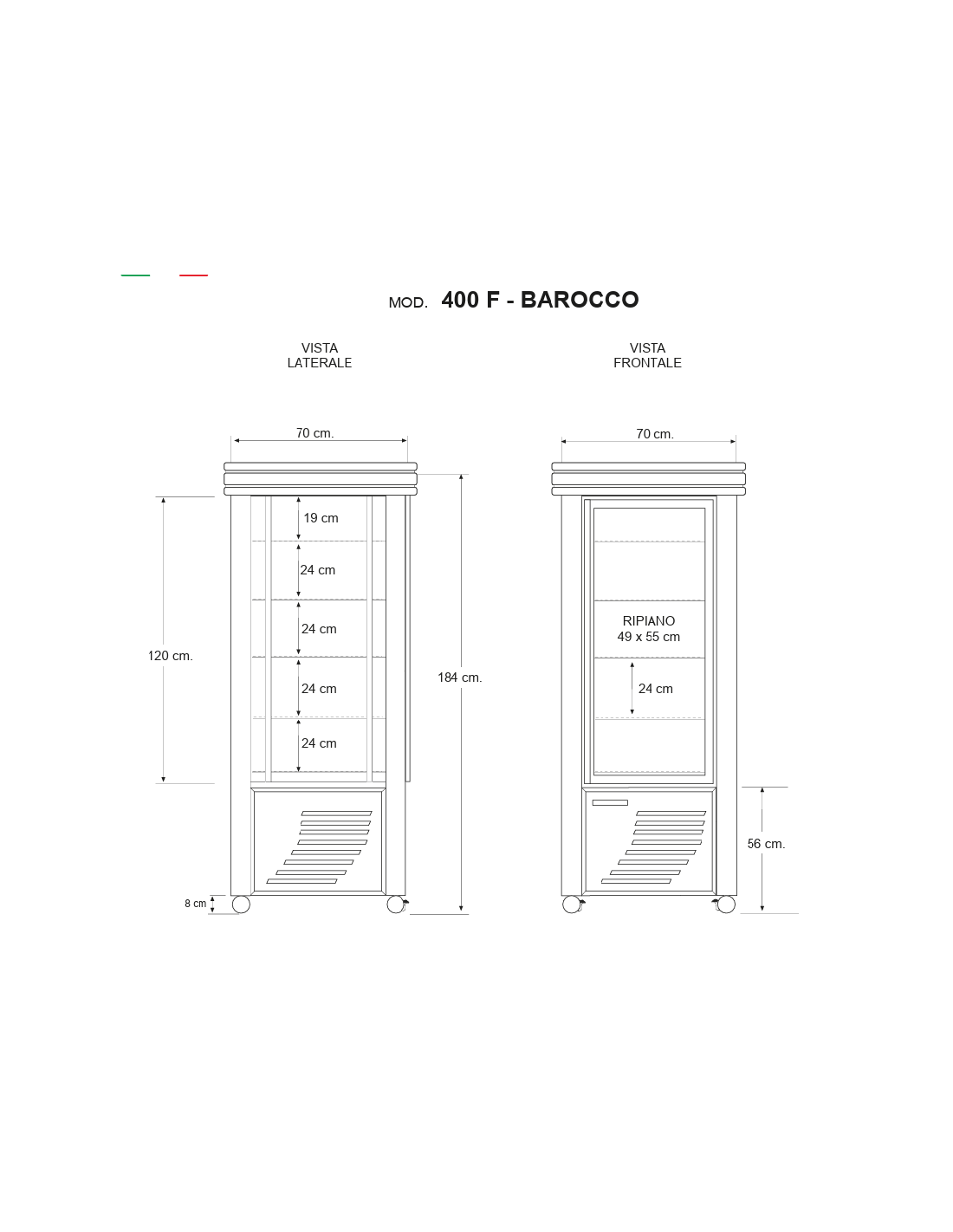 Vetrina refrigerata - Capacità 500 litri - cm 82 x 66 x 196 h