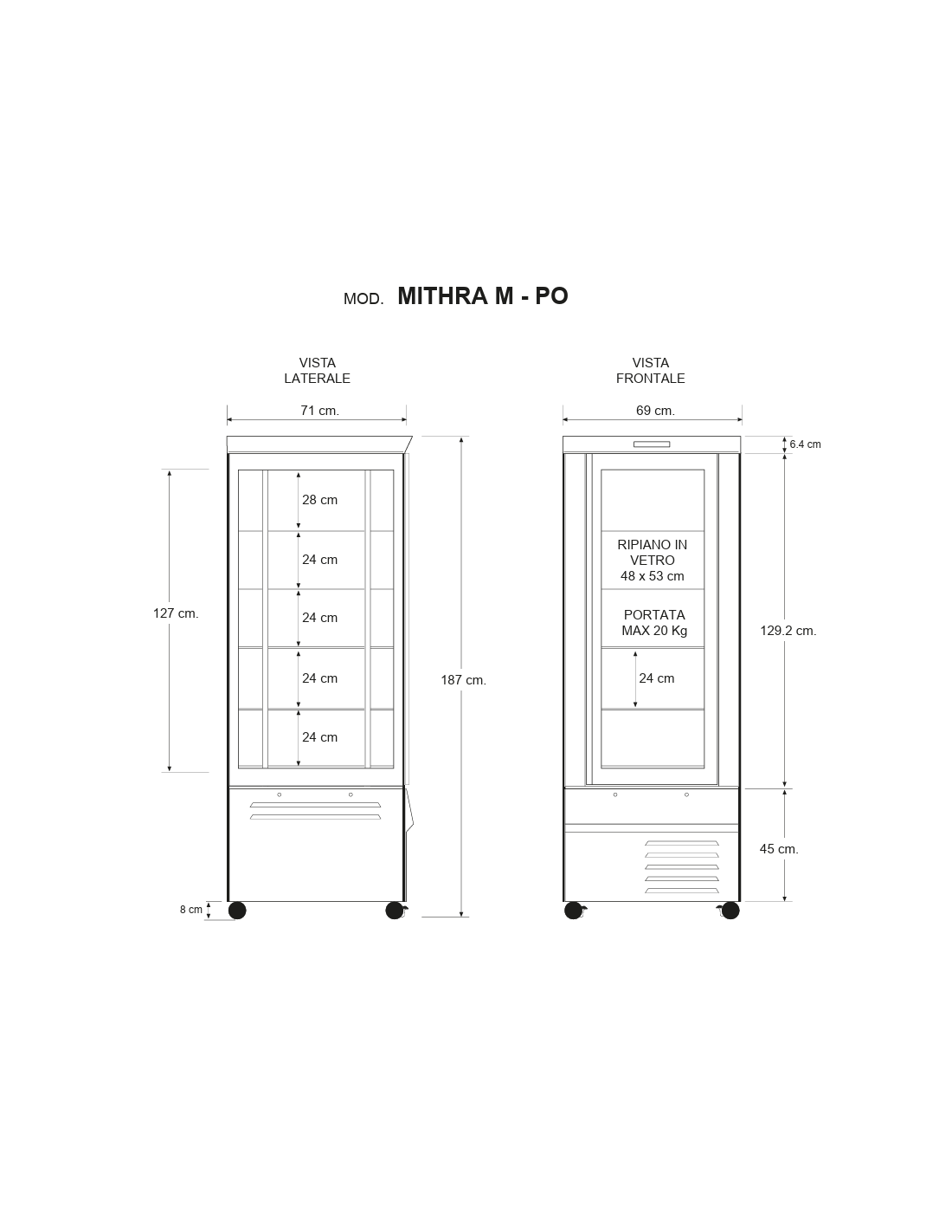 Vetrina refrigerata - Capacità 430 lt - cm 67 x 64 x 191h