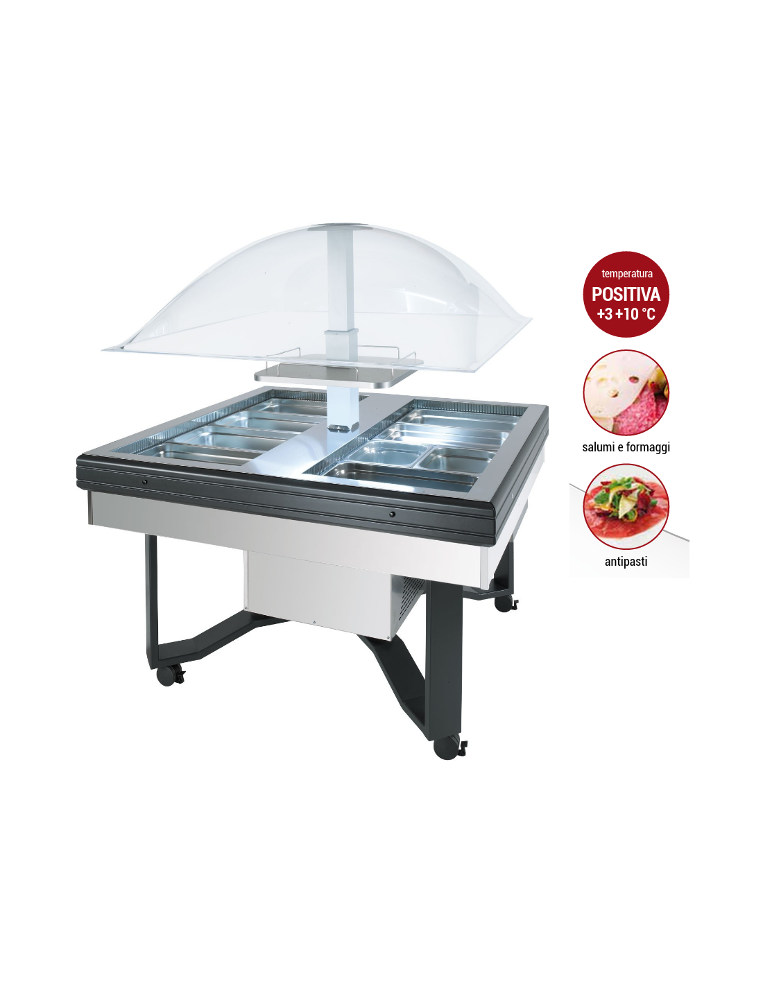 Isola Buffet con cupola elettrica e mensole - Temperatura +3 / +10°C - cm 185 x 185 x 170 h