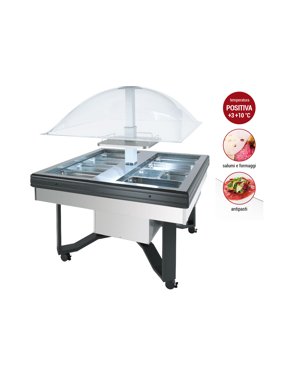 Isola buffet con cupola elettrica senza mensole - Temperatura +3 / +10°C - cm 149 x 149 x 170 h