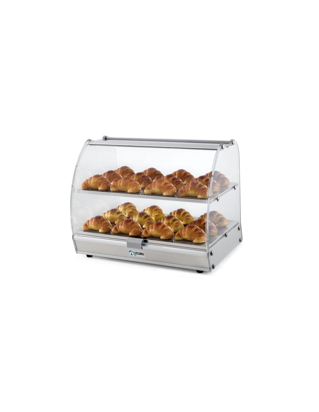 Vetrina neutra - VISION RAINBOW - Ideale per l'esposizione di cornetti e brioches - N. 2 ripiani cm 53 x 35.6 x cm 53 x 32 - Dimensioni cm 55 x 40.5 x 42.5 h