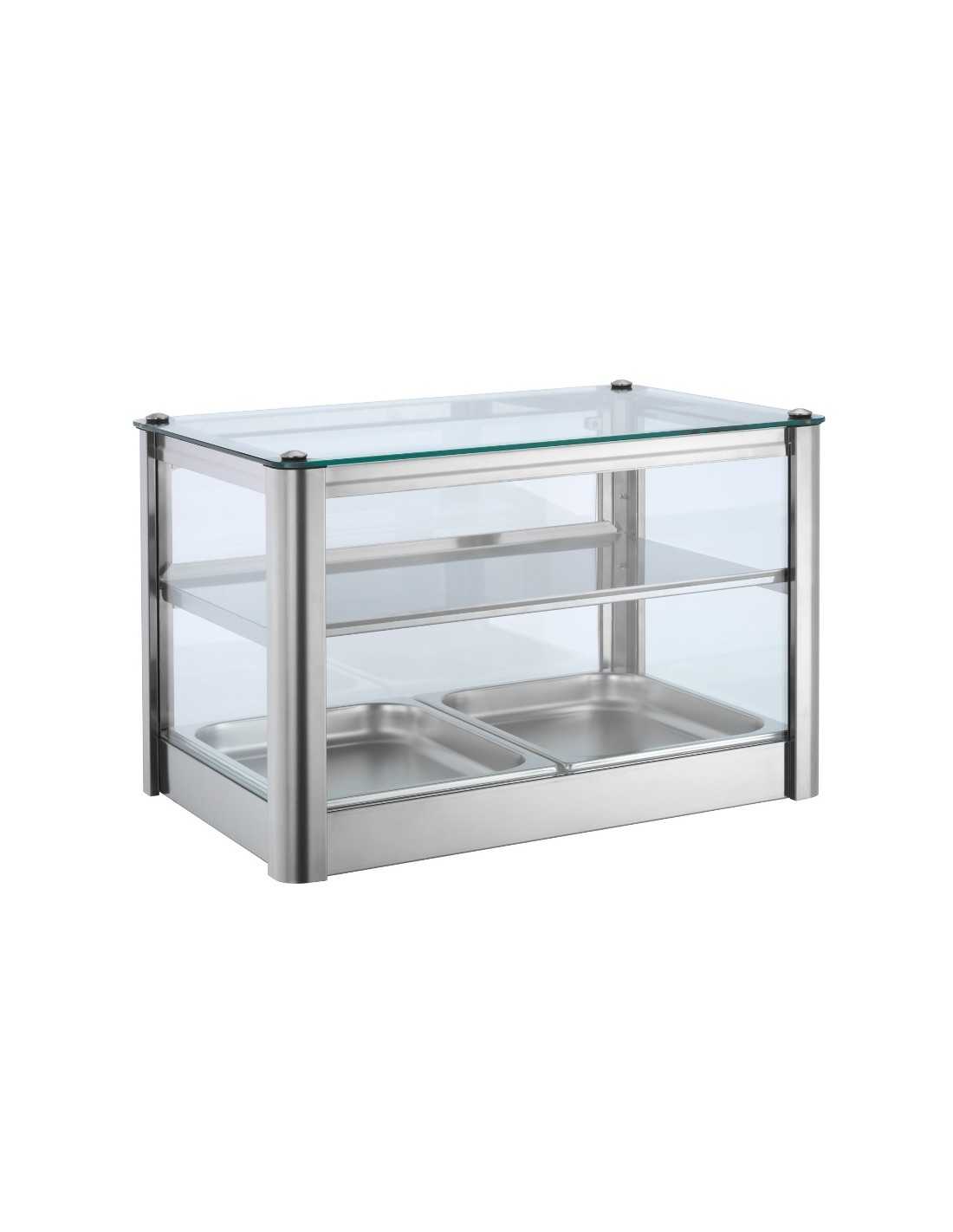 Vetrina espositiva calda - Mod. VBR4751 - Temperatura +30/+90° C - Struttura acciaio inox AISI 304 - Fianchi e antine in plexiglass - Termostato regolabile - Dispositivo di umidificazione - Potenza W 250 - Alimentazione monofase 230V/50-60Hz - n° 1 ripiano - Dimensioni cm 50 x 35 x 25 h