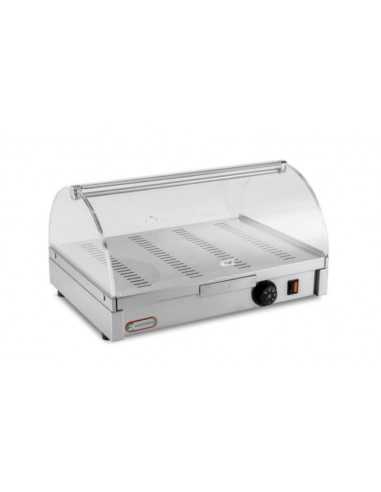 Vetrina riscaldata - Modello VEC510RINOX - N. 1 ripiano - Struttura in acciaio inox - Antina rotonda in plexiglass - Termostato 30° 90°C - Dimensioni cm 50 x 35 x 27 h