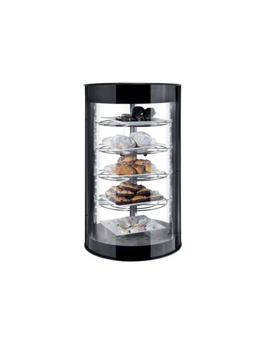 Espositore vetrina calda - Mod. CEDL - Da banco - Temperatura +30°/+70°C - Illuminazione a led - N°4 ripiani - Alimentazione V230/1/50Hz - Dimensioni cm ø 43.5 x 71 h