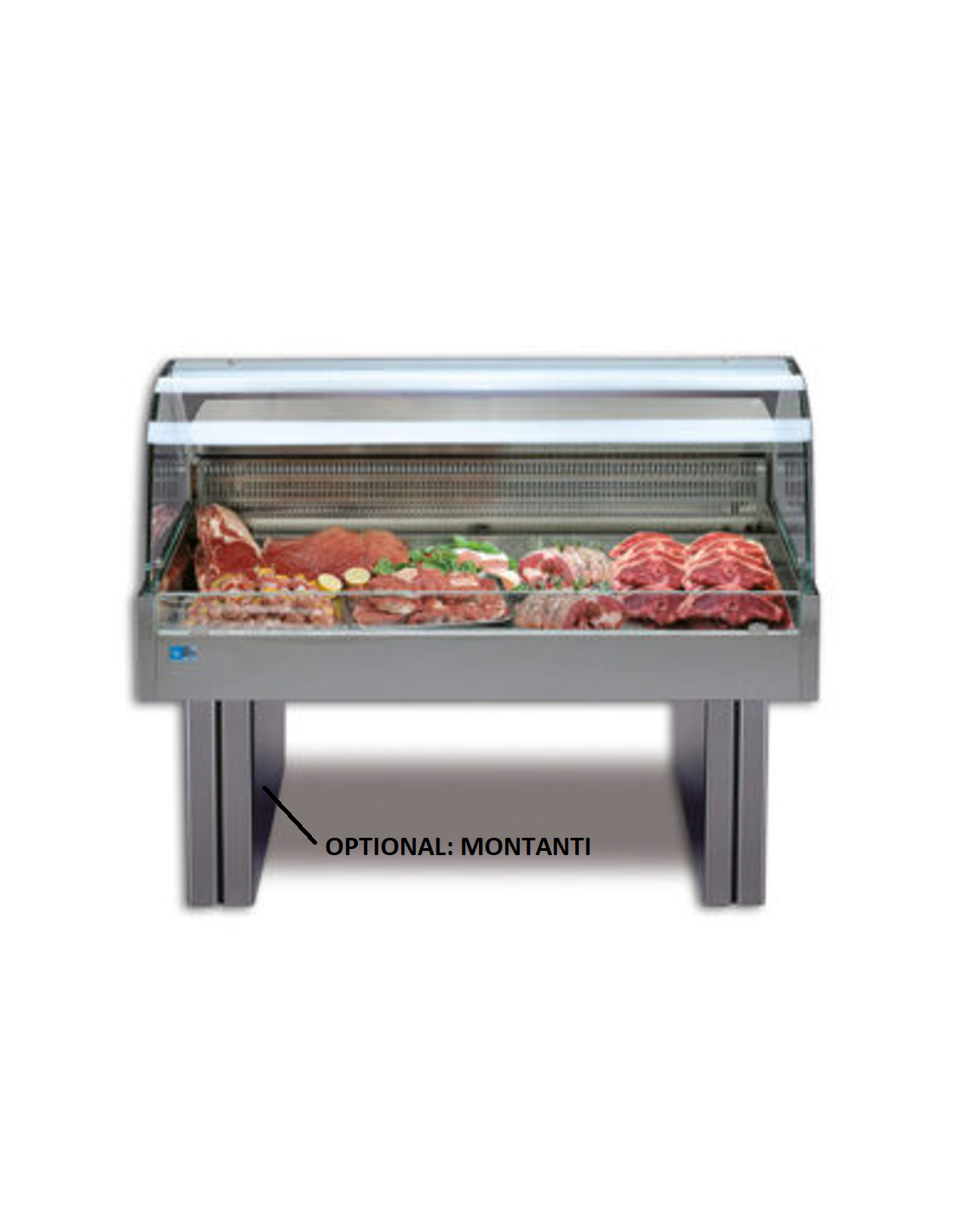Espositore refrigerato - Mod. SHOPPING2000COLD - Per carne e pesce - Temperatura -1°/+6°C - Vetri curvi - Refrigerazione statica - Potenza W 440 - Gas refrigerante R290 - Illuminazione a led - Alimentazione monofase V230 - Cm 203.8 x 96 x 61.5 h
