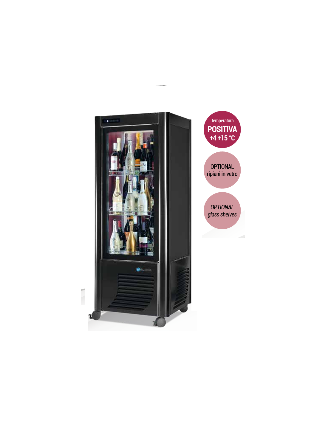 Vetrina espositiva per Vino - Temperatura +4 +15 °C - cm 70 x 70 x 184 h