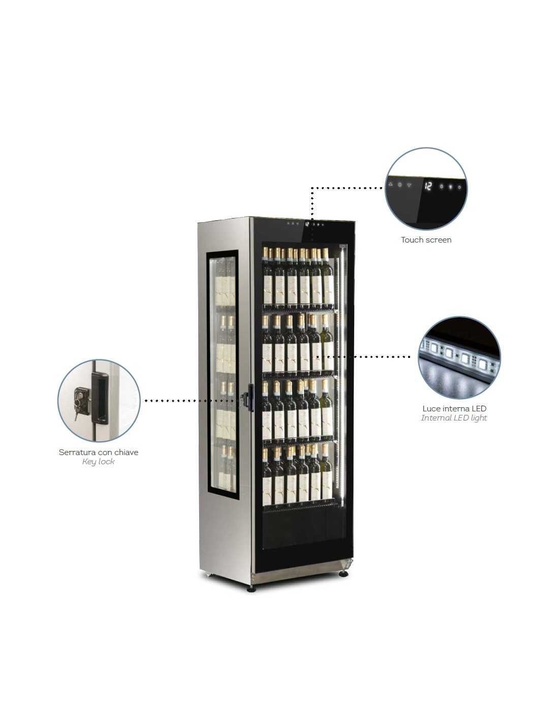 Espositore vini - Multitemperatura +8+22°C / +5 +22°C - Cm 59.5 x 63 x 186 h
