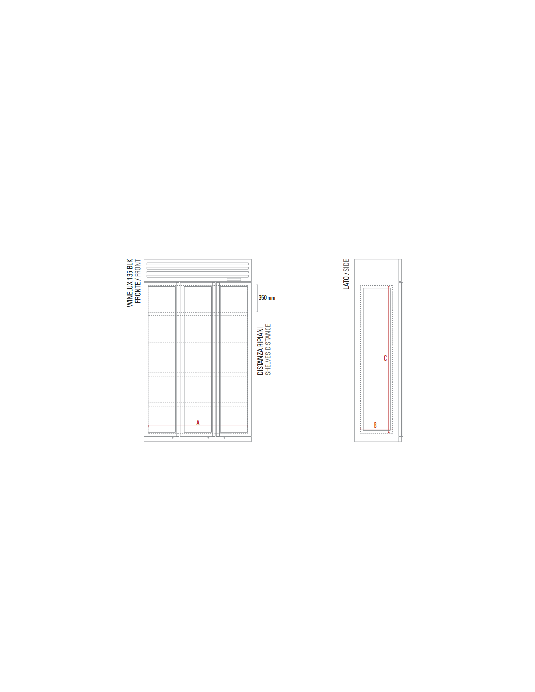 Espositore vino - Temperatura +2 +12 °C / +12 +20 °C / +2 +20°C - cm 92 x 69 x 180 h