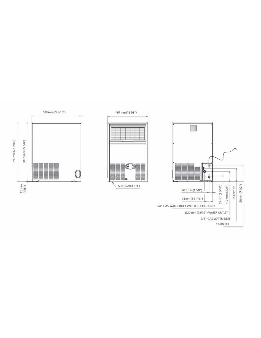 Fabbricatore ghiaccio - Aria 54kg/24h - Acqua 57kg/24h - cm 51.5 x 64.5 x 84 h