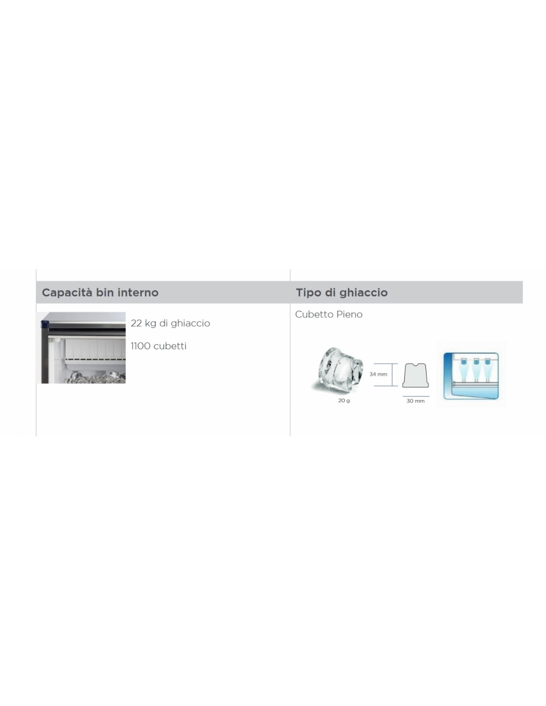 | Capacità bin interno | Kg 22 (circa 1222 cubetti) |