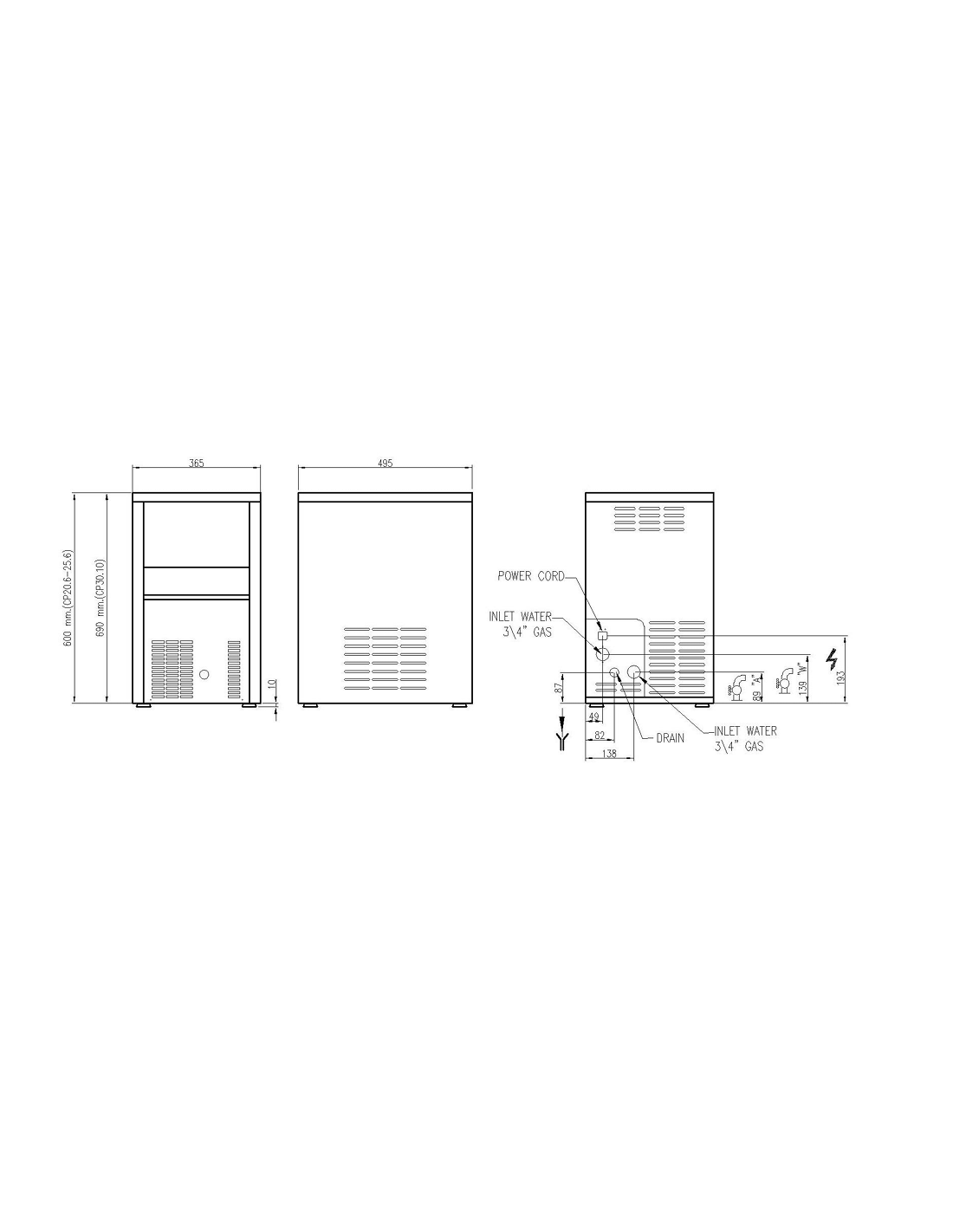 Fabbricatore di ghiaccio a cubetti pieni - Modello: KP30-12 - Sistema di condensazione ad Aria produzione 30 Kg/ 24 h - Sistema di condensazione ad Acqua produzione 30 Kg / 24 h - Serbatoio 12 Kg - Cubetto 18 gr - Gas refrigerante R 290 - Dimensioni cm 39 x 55 x 69 h