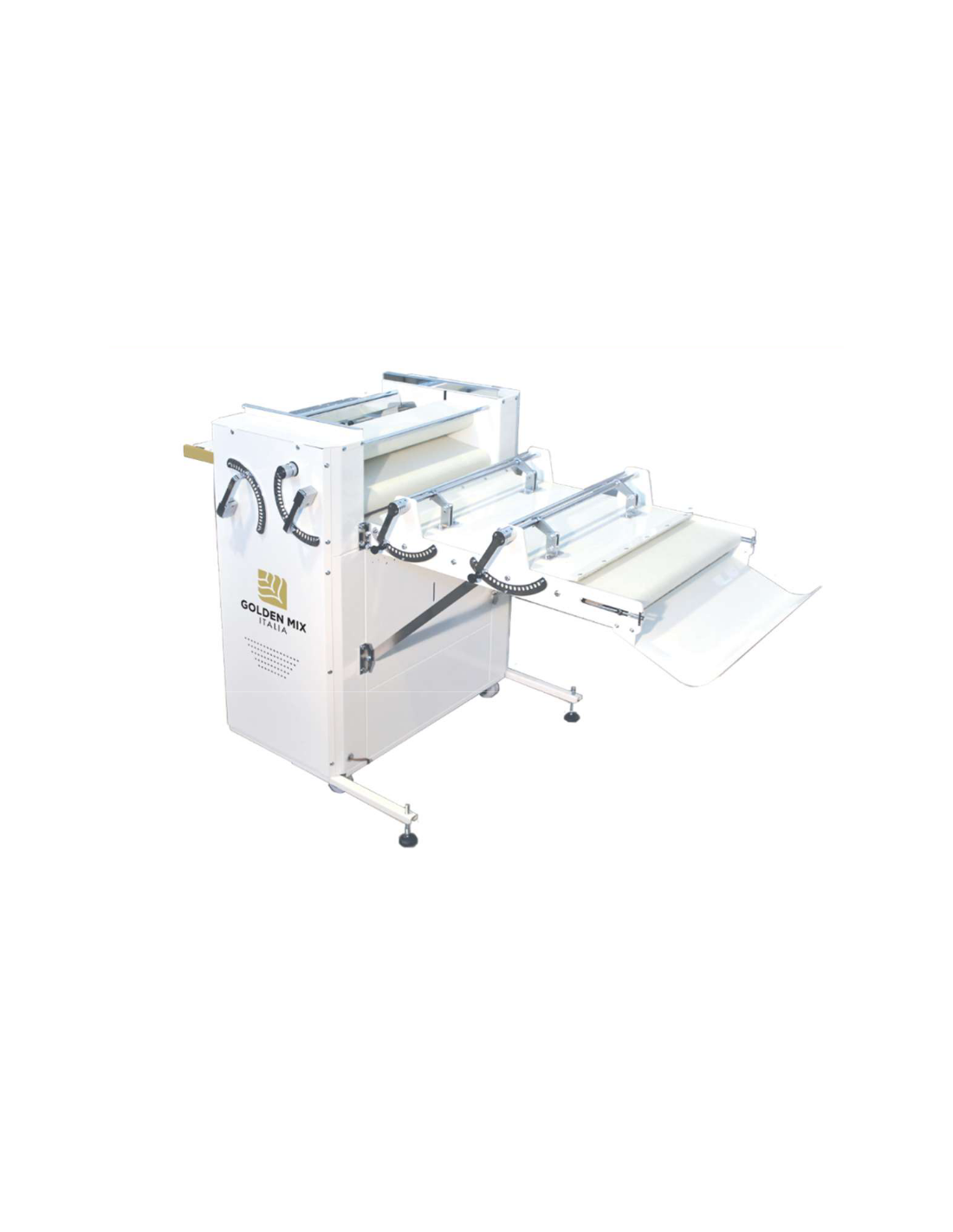 Formatrice a 3 cilindri - Mod. F3C600+FIL - Struttura in Lamiera con Polveri - Cilindri mm 615 - Con Filonatore - Grammi pasta 20-2000 - Blocco Tappeto superiore - Con 4 Raschiatori - con Vassoi e Protezioni Cilindri in Acciaio inox - con Dispositivo Anti-Scarto - Potenza Kw 0.75 - Alimentazione trifase V400/3/50Hz - Dimensioni cm 172 x 100 x 122 h