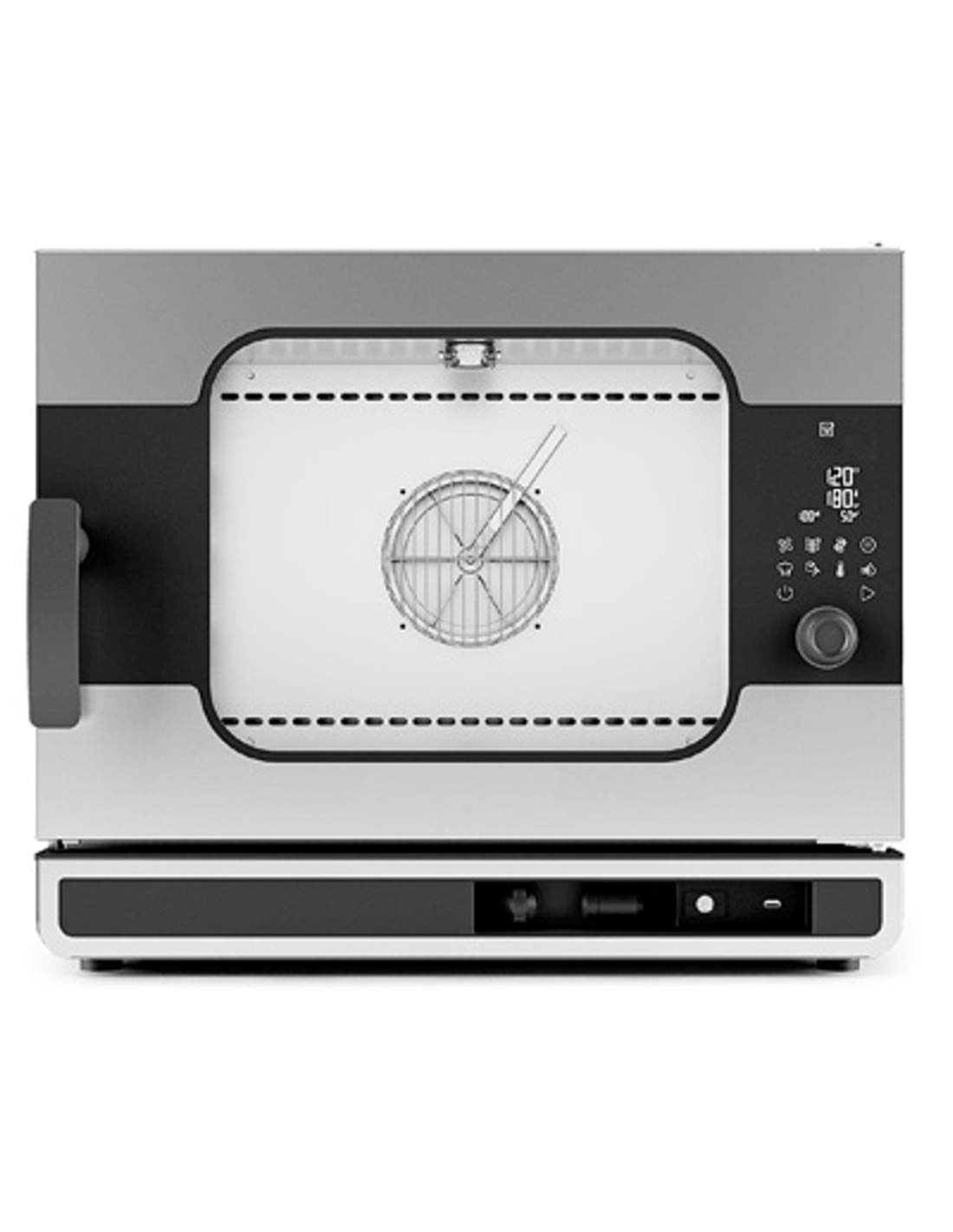 | Convenzione a temperatura +30 +300°C - Ventilazione da 45% a 100% - Umidificazione manuale e automatica. Permette di cuocere in modo uniforme e veloce molte pietanze. Indicata per la pasticceria secca. |