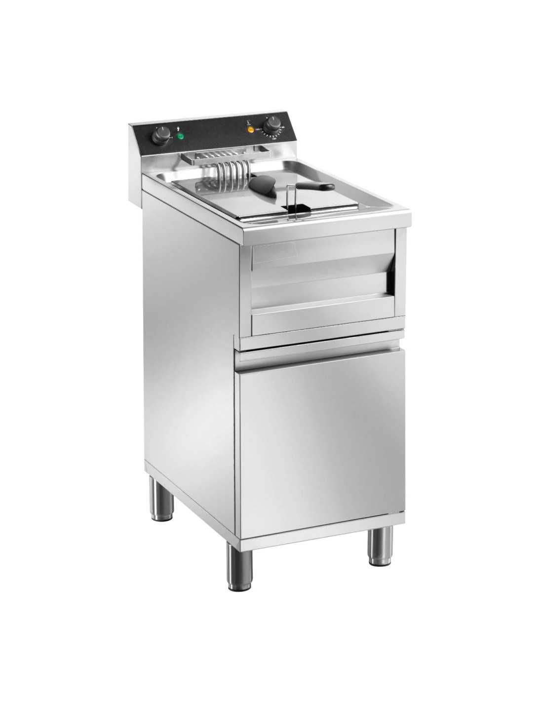 Friggitrice elettrica - Modello FR12A - Capacità vasca litri 12 - Struttura in acciaio inox - Potenza kW 9 - Alimentazione 400/3N/50-60 - Dimensioni cm 40 x 70 x 96 h