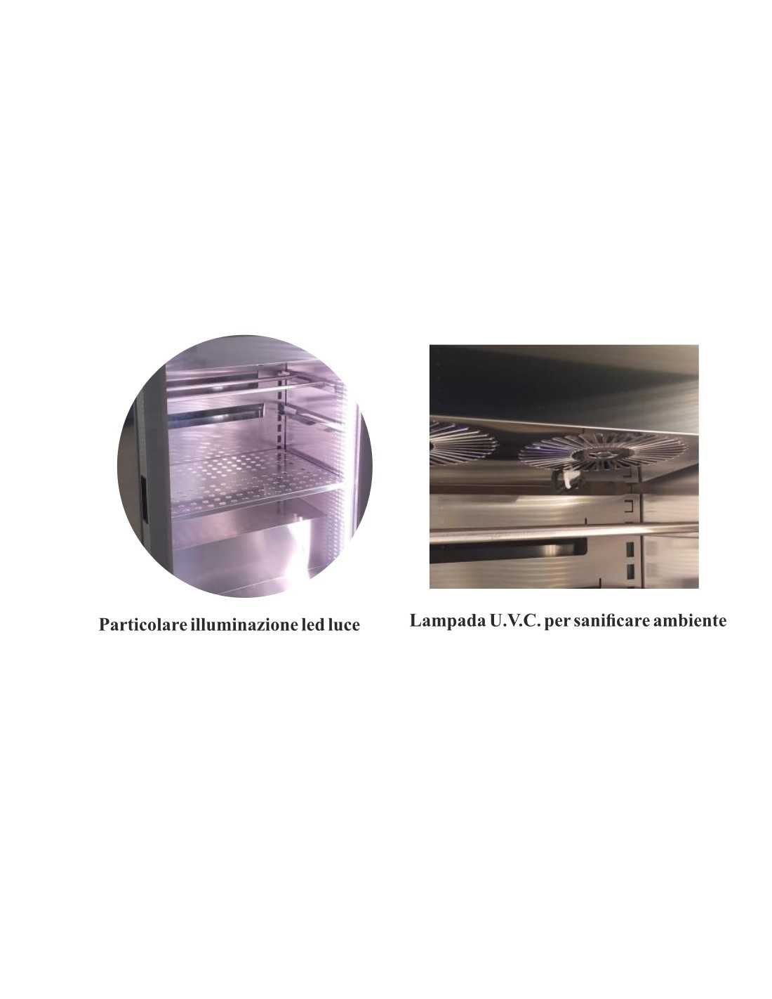 | Unità refrigerante con unità condensatrice composta da un compressore ermetico e un condensatore alettato di tipo ventilato. Inoltre nella parte interna della cella di stoccaggio è montato il pacchetto evaporante ventilato | |