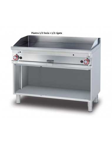 Fry top a gas - Mod. FTLR-712G - 1/2 Piastra liscia 1/2 Piastra rigata - Struttura in acciaio inox - Vano a giorno - N. 2 zone di cottura - Potenza totale kW 21 - Dimensioni cm 120 x 70,5 x 90 h