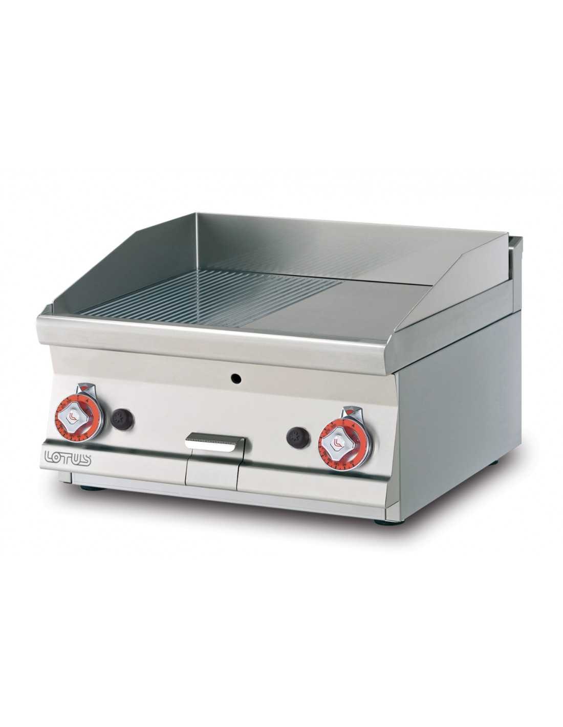Fry top a gas - Piastra 1/2 liscia 1/2 rigata al cromo - Cm 60 x 60 x 28 h