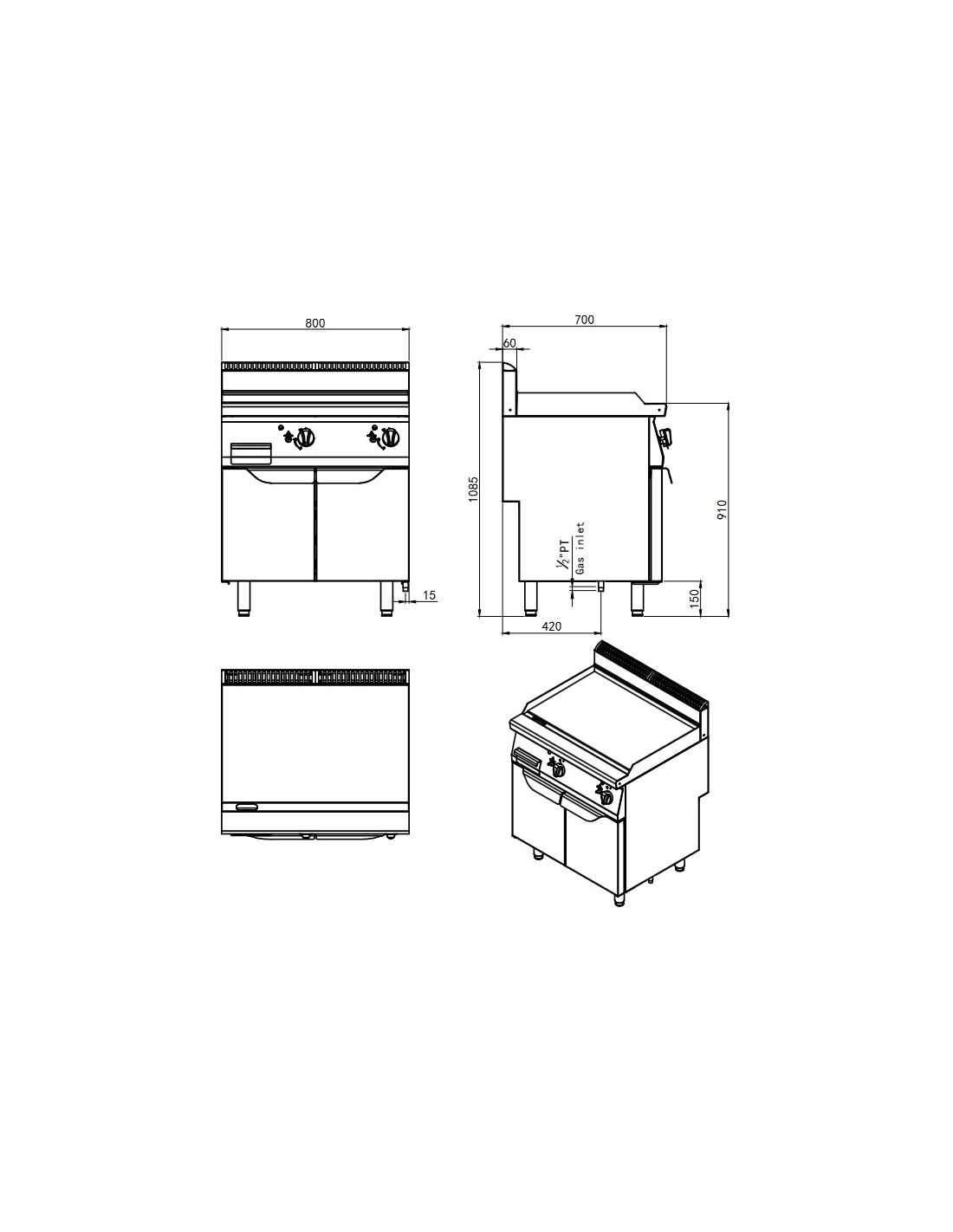 Fry top a gas con piastra liscia - cm 80 x 70 x 108.5 h