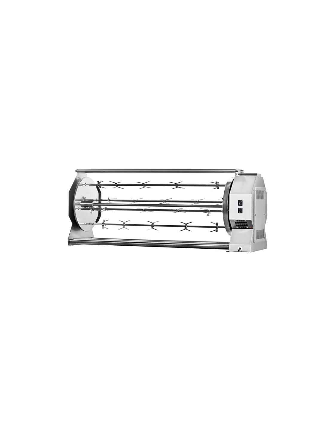 Girarrosto planetario a legna da incasso camino - Modello CAMINO16P - Capacità N.16 Polli - N. 2 motori - N. 4 aste con forchette cm 76 - Dimensioni cm 102 x 55 x 64.6h