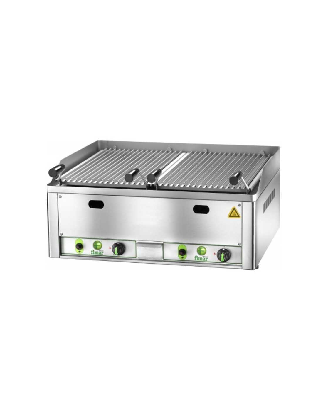 Griglia pietra lavica - Modello GL66 - Griglia di cottura in lamiera a V in acciaio inox - Potenza Kw 13 - N. 2 bruciatori - Dimensioni griglia cm 31.2 x 48.3 + 31.2 x 48.3 - Alimentazione metano - Dimensioni cm 62.5 x 66 x 30 h