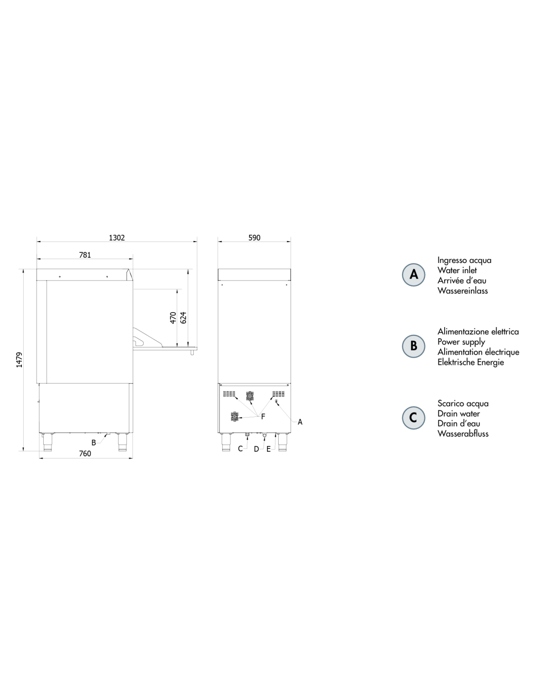 Lavastoviglie con cesto quadrato da 50x63 con Pompa di Scarico - Dimensioni cm 59 x 78.1 x 147.9 h