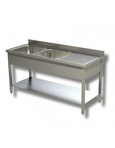 Lavatoio AISI 430 - Profondità 60 - Vano pattumiera - N.2 vasche - Gocciolatoio destra