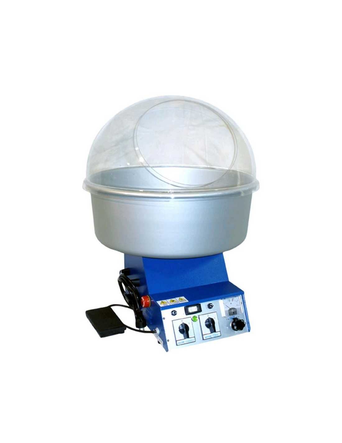 Macchina per zucchero filato - Modello ELETTRONICOBLU - N.1 serbatoio gr 450 - Padella in alluminio - Cupola in plexiglass - Dimensioni padella cm Ø 60 - Alimentazione monofase V230 - Dimensioni Cm 45 x 37 x 43 h