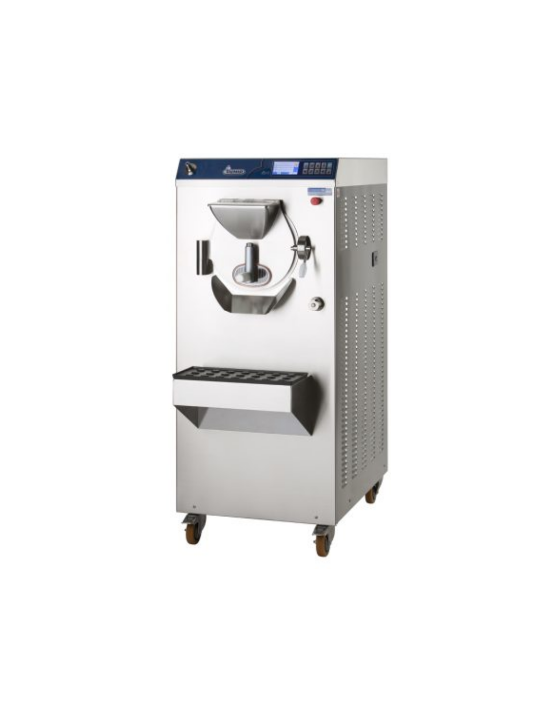 | Rivoluziona gli standard qualitativi così da ottenere un gelato asciutto con un overrun, (aria incorporata), che può arrivare al 40% del peso miscela e contemporaneamente mantenerla nel gelato per una maggiore cremosità e sofficità. Fra le tante novità l’estrazione del gelato con variazione automatica e progressiva della velocità di rotazione dell’agitatore, che facilita le operazioni di variegatura e realizzazione di gusti con l’inserimento di altri ingredienti | |