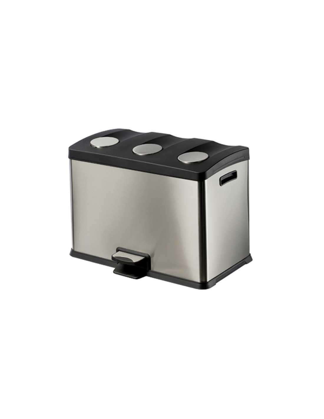 Pattumiera per la raccolta differenziata - Mod. 2561 - Coperchio con apertura a pedale in polipropilene e acciaio inox - Sistema di chiusura soft-close - Maniglie laterali - Interno secchio in polipropilene - Base in ABS - Capacità 3 x 12 litri - Cm 60 x 39 x 43 h