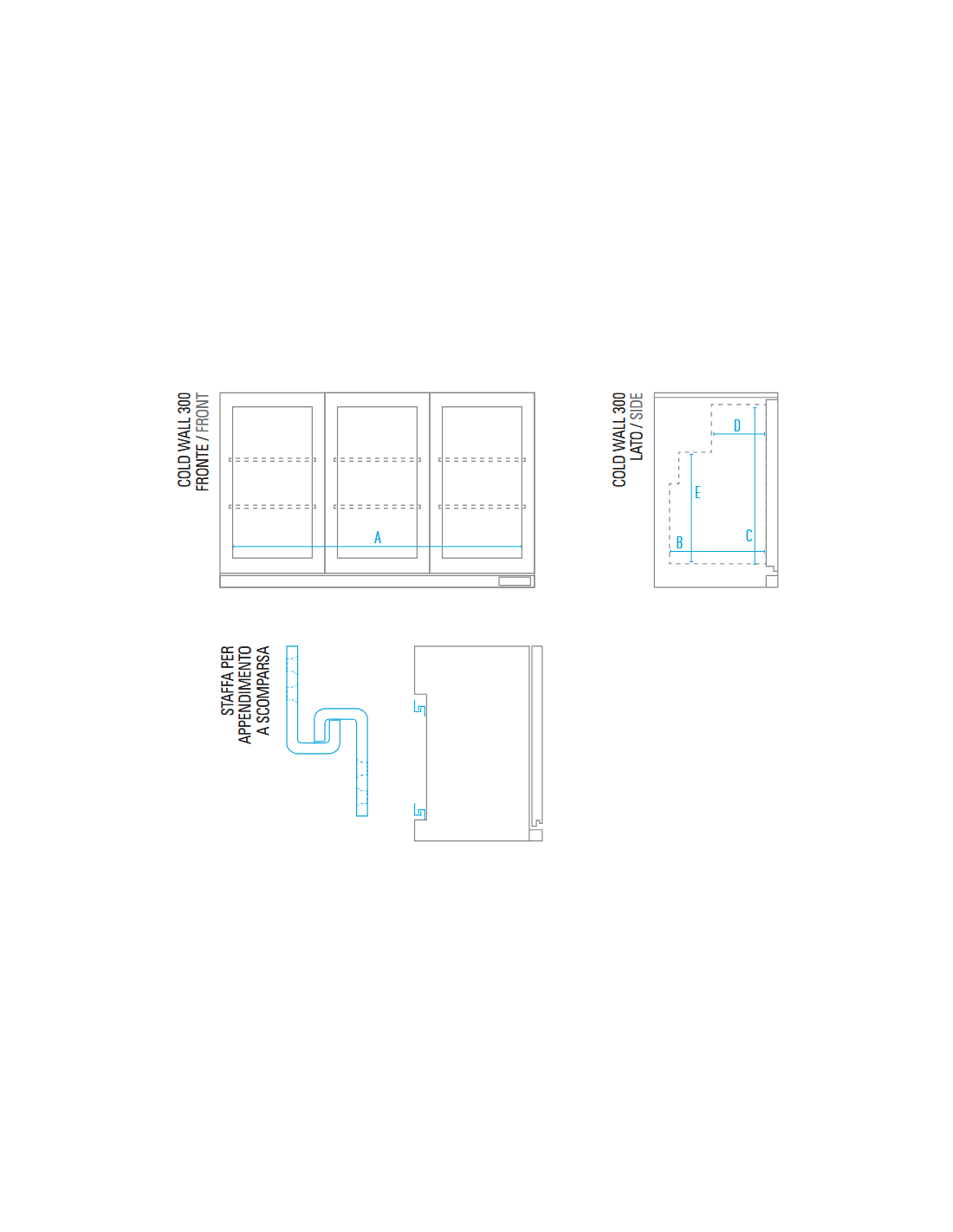 Pensile refrigerato - Modello COLDWALL - 3 porte - Capacità litri 254 - Temperatura -2 + 10 °C - Dimensioni cm 135 x 56,5 x 85,2 h