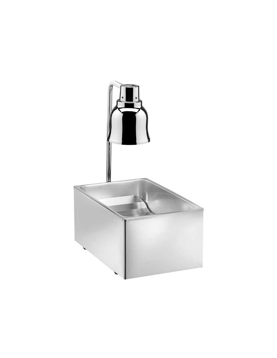 Scaldafritti - Modello SP1 - Struttura in acciaio inox - Vasca GN1/1 con fondo forato - Portalampada in rame cromato Ø 175mm con interruttore 1-0 - Potenza 250W - Alimentazione monofase 230V-Dimensioni cm 34x58x76h