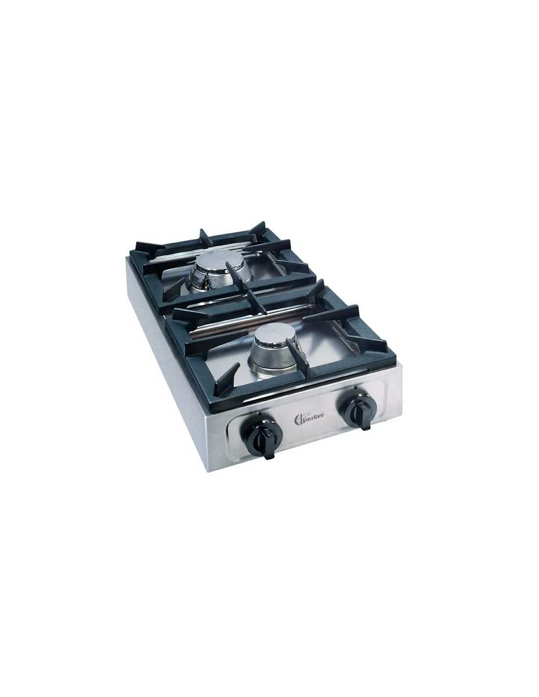 Piano di cottura a gas - Mod.BIG7002F - N. 2 fuochi a gas (con diverse combinazioni da decidere in fase d'ordine) - Valvola di sicurezza - Fiamma pilota - Potenza kW 3 / kW 4.5 / kW 6,5 - Dimensione cm 35 x 66 x 17 h