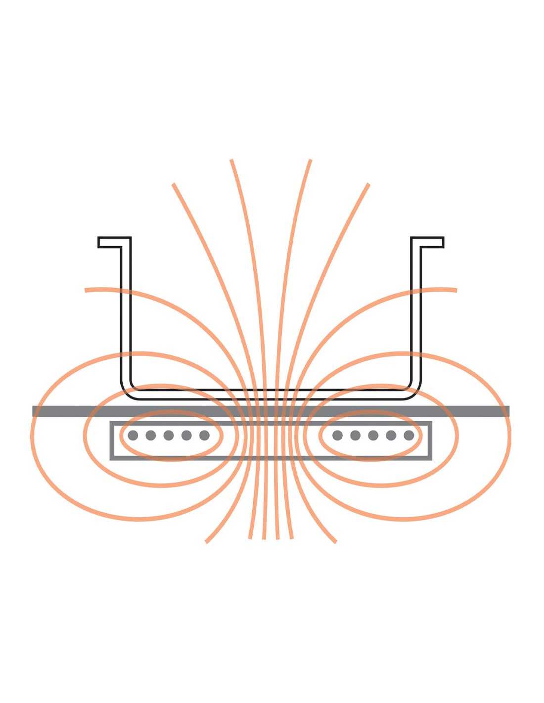 | Il calore viene prodotto da un campo magnetico direttamente all'interno del contenitore. La cottura avviene senza perdite di calore | |