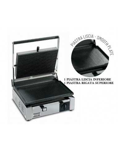 Piastra elettrica in ghisa - Mod. PS2015 - Piastra superiore rigata - Piastra inferiore liscia - Alimentazione monofase 230V - Dimensioni piastra cm 35.5x25.5 - Temperatura 300° - Dimensioni cm 38x43.5x23.5 h