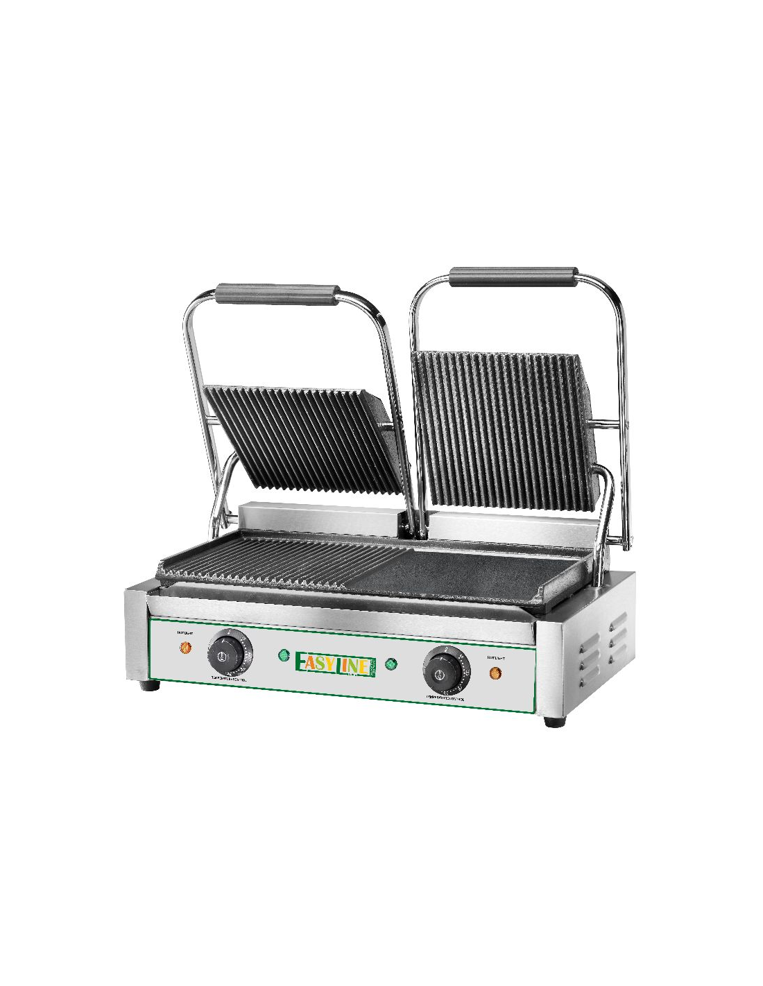 Piastra elettrica con piano rigato e coperchio rigato - Due zone di cottura
