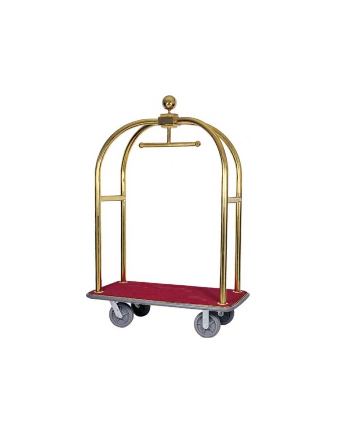 Carrello portavaligie e portabiti - Modello PV2001 - Base in legno ricoperta da moquette colorata - Moquette rossa - Struttura ottone - Paracolpi in gomma - Ruote multidirezionali - Peso max Kg 150 - Dimensioni cm 124x 64 x 190 h