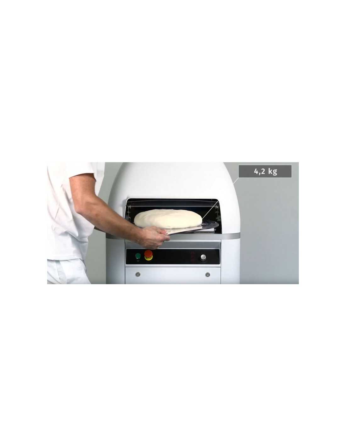 | Ciclo di lavoro: 1. inserire il piatto manualmente; 2. chiudere il riparo anteriore; 3. impostare il numero di programma - impostare i tempi di lavoro (pressata, arrotondamento e camera); 4. premere il tasto Start; 5. la macchina pressa, taglia e arrotonda in automatico; 6. aprire il riparo anteriore; 7. togliere il piatto con le palline formate | |